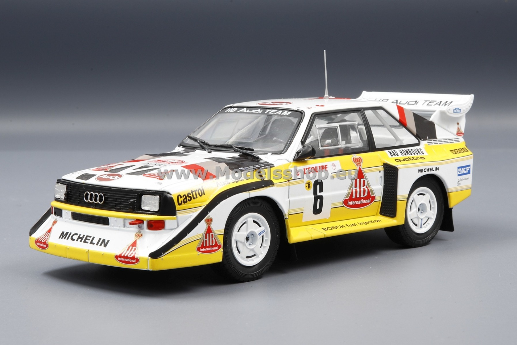 - Audi Quattro S1, No.6, HB Audi team, HB, Rallye WM, Rally Monte Carlo 1986 H.Mikkola/A.Hertz 1:24was €39.95 Special Price €31.96 €25.77Add to CompareOut of stock