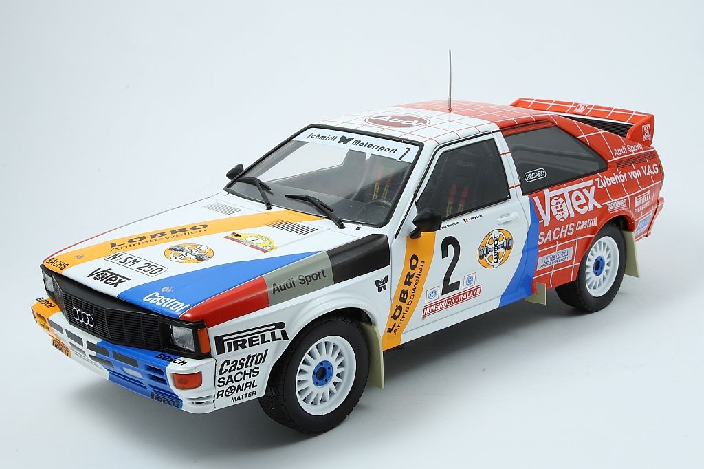 - Audi quattro, 1984 No.2, Schmidt Motorsport, Rallye DM, Hunsrück Rallye, H.Demuth/W.Lux 1:18was €59.95 Special Price €47.96 €38.68Add to CompareOut of stock